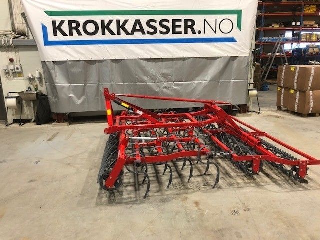 KOMBI er en S-tinn harv med ribbetrommel både foran og bak. Â Arbeidsdybde er opp til 13 cm.