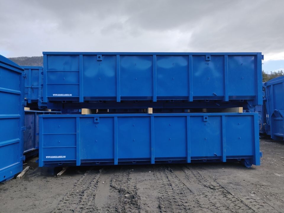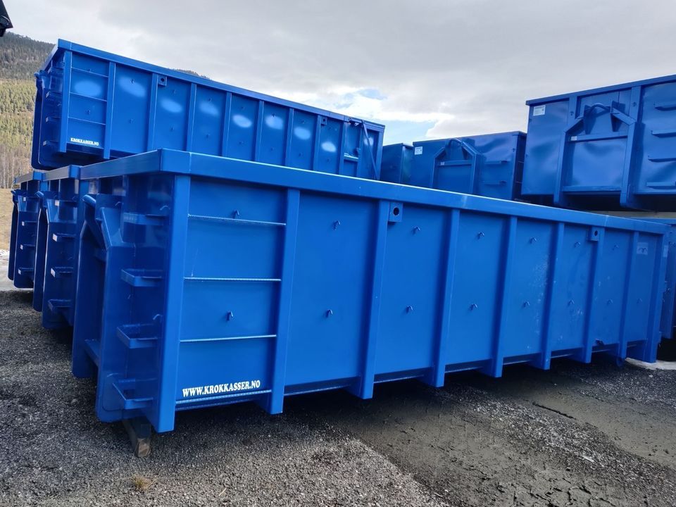Stort lager på ?Rudivollvegen 22 med over 300 krokkasser, flak, dumpere, rammer og mer klart for levering. Vi får inn flere lass med containere hver uke, så har vi det ikke på lager, er det ikke langt unna. Har du spesielle ønsker bestiller vi det direkte fra fabrikken.