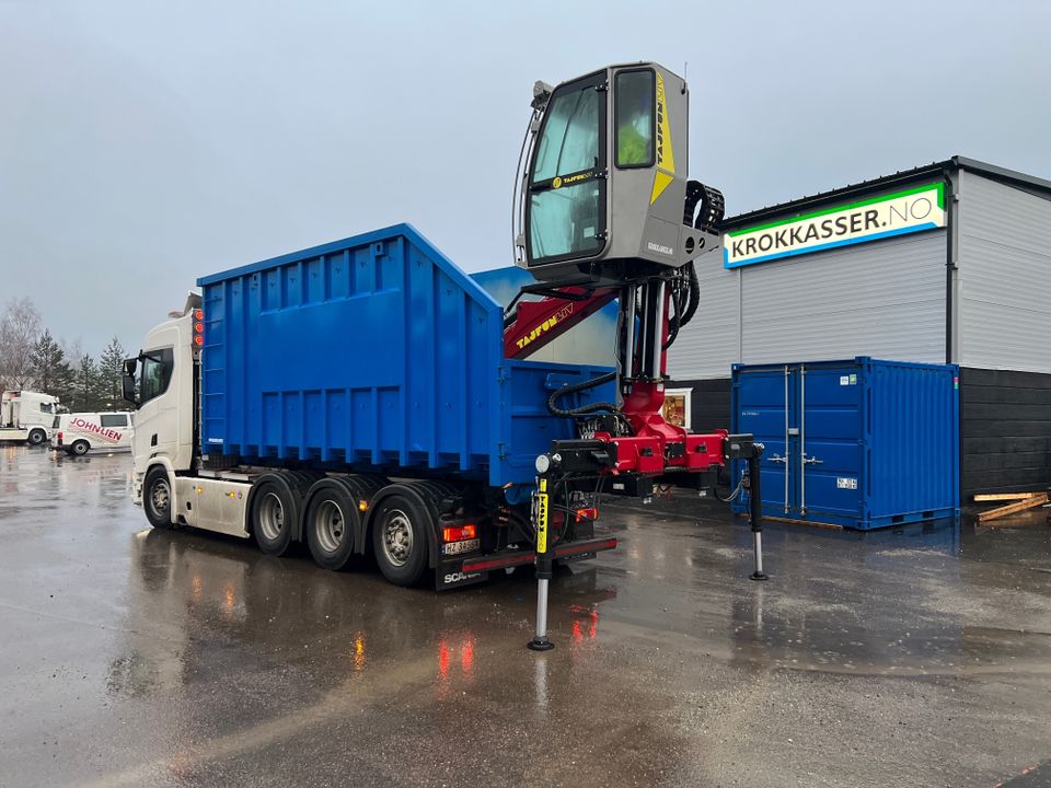 Tajfun Liv K130/96 tømmerkran montert på krokkasse.