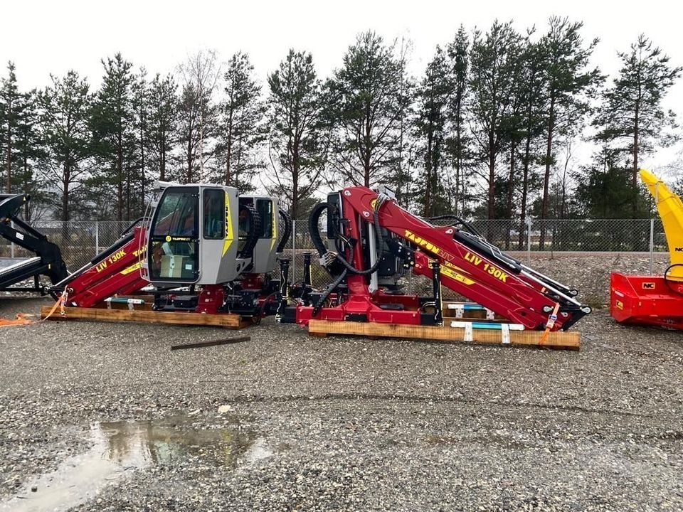 Ny tømmerkran Tajfun Liv K130/96 montert på konsoll.