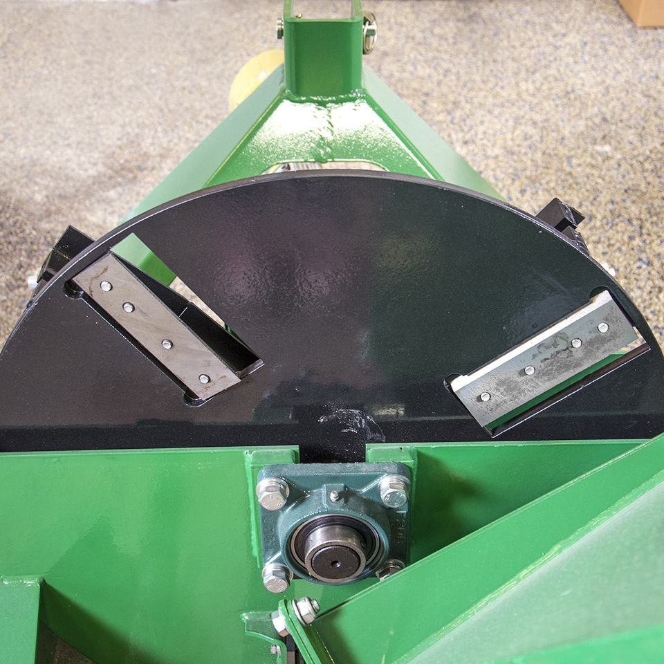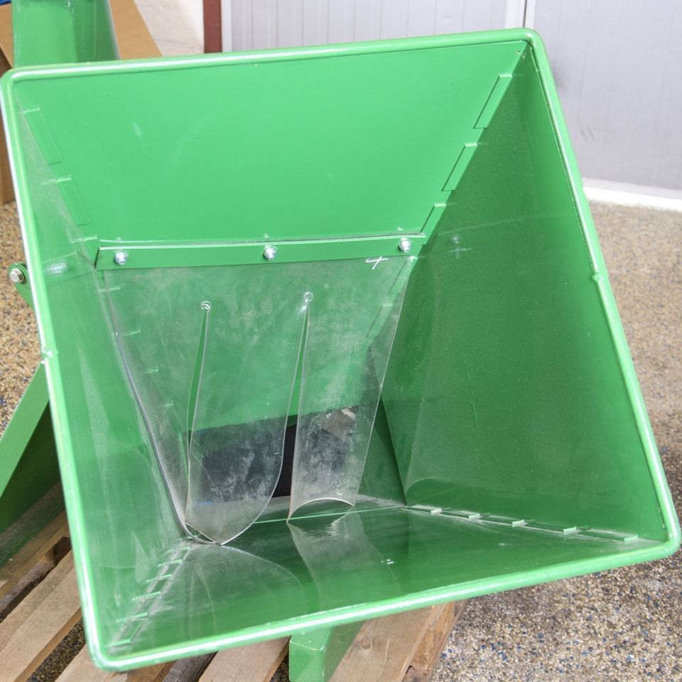 Vinekelen på innmatingen gjør at den trekker virket inn sjøl. En viktig detalj og se på når man skal velge flishugger uten hyd inntrekk.