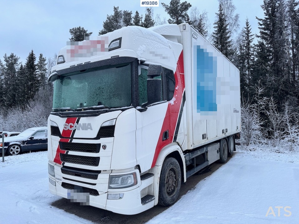 Beskrivelse: Scania R500 skapbil fra 2017. Bilen har full sideåpning og Zepro løftelem. Den er Eu-godkjent og klar for levering. Det er mulig å kjøpe en 2018 modell også.