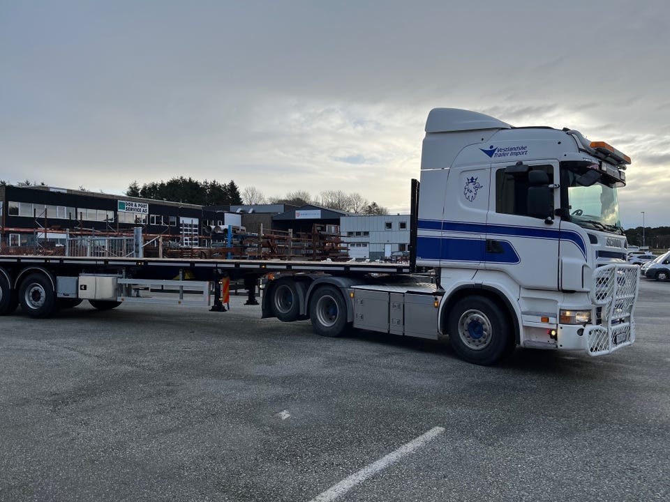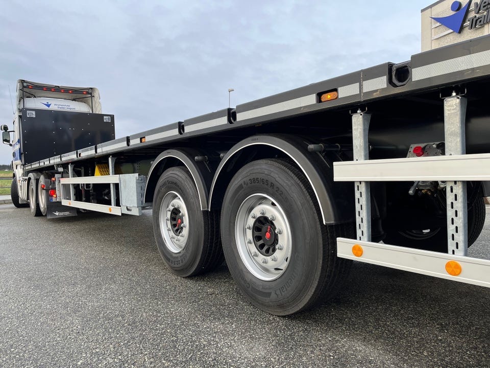 Vi har på lager en meget solid tralle med suveren overflatebehandling og lav egenvekt på kun 7300 kg. Masse nyttige detaljer, deriblant containersystem, strøkasse, rustfritt verktøyskap, ADR og mange stakehull (Laxo) og surrefester.