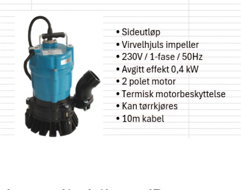 | Modell | : | Andre Pumper. Nedsenkbar Lensepumpe |